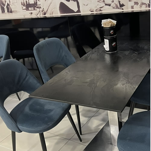| Prodotti | Sedia Luna, Piano hpl ardesia , Komodo |