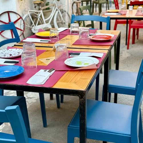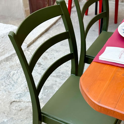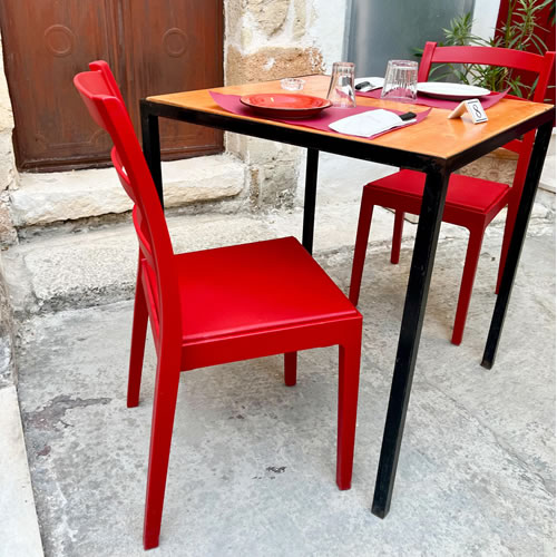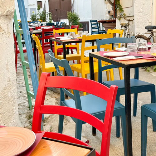 Per la vineria Color Vinaccia a Manduria abbiamo progettato un ambiente allegro, vivace e accogliente, dove il design incontra la funzionalità. L’arredo è stato completato con la sedia Rea in polipropilene, scelta in diverse tonalità per creare un gioco di colori armonioso. Ispirata alla classica sedia Venezia in legno, la Rea offre una versione moderna e pratica: è impilabile, resistente e facile da pulire, ideale per contesti dinamici come ristoranti, enoteche e vinerie. Un perfetto equilibrio tra estetica tradizionale e comfort contemporaneo