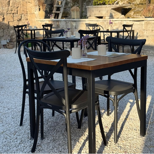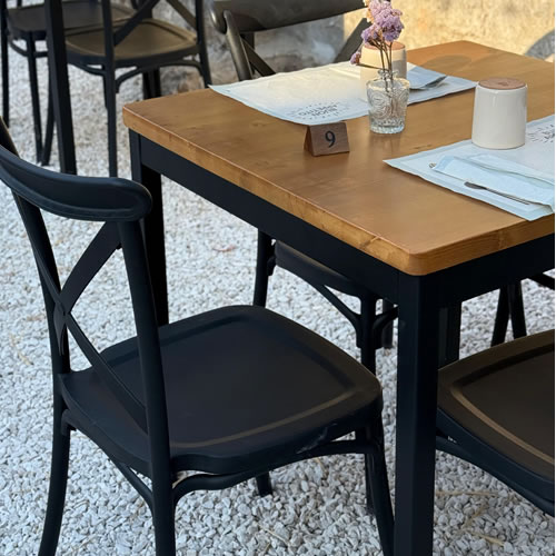 Per la vineria Dverso a Oria, abbiamo creato un ambiente dal carattere distintivo, combinando eleganza e praticità. Le sedie Cross, disponibili sia in legno che in polipropilene, sono il cuore del design, abbinate a tavoli personalizzati con piano in legno di abete verniciato, dello stesso colore delle sedie in legno, per un effetto armonioso e coordinato. Per offrire maggiore comfort e funzionalità, abbiamo integrato anche i tavoli Jacopo in lamiera zincata autolivellanti, perfetti per un locale che, come il suo nome, si distingue per originalità e comfort. Un progetto che unisce estetica e praticità per un’esperienza unica nel cuore di Oria