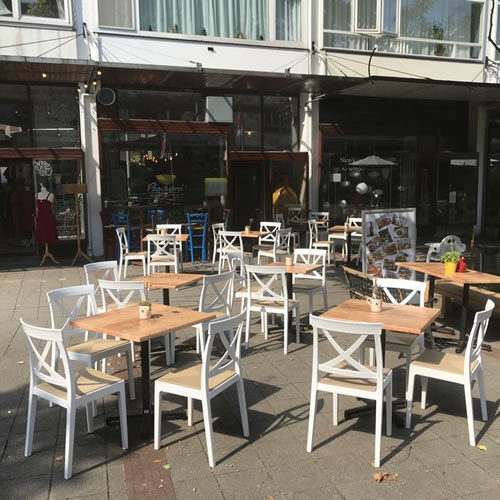 Ha completato la fornitura, sedie MADE IN ITALY una base in ghisa per le esigenza di vento forte e un piano in werzalit.