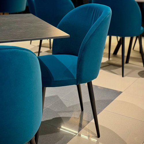 Per Pizza Express, abbiamo curato l’arredo della sala interna fornendo le sedie imbottite Marte, caratterizzate da un elegante rivestimento in velluto idrorepellente e una robusta struttura in ferro conificato verniciato nero, pensata per unire stile, comfort e resistenza. La scelta del velluto dona un tocco sofisticato all’ambiente, offrendo al tempo stesso una seduta comoda per tutti i clienti.