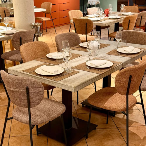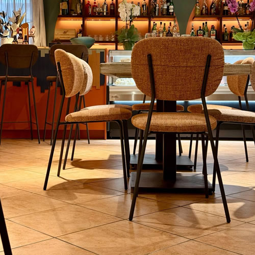 Per Il Cantinone Coppula Rossa abbiamo realizzato le sedie ristorante modello Vanessa, proposte in diverse fantasie con rivestimento antimacchia, ideali per un utilizzo intensivo nel settore horeca. La sedia Vanessa si distingue per il design compatto e funzionale: poco ingombrante, comoda e facilmente impilabile, si integra perfettamente in ambienti dinamici senza rinunciare allo stile. In coordinato, abbiamo fornito anche gli sgabelli della stessa linea, garantendo coerenza estetica e praticità d’uso in tutto lo spazio.