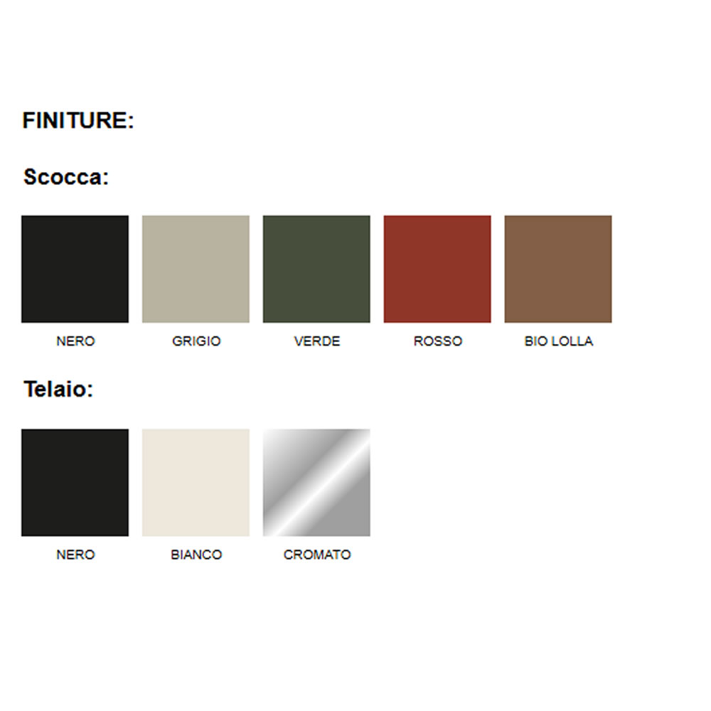 | Colorazioni polipropilene | Blu petrolio, Caffè, Cappuccino, Celeste, Coffee |