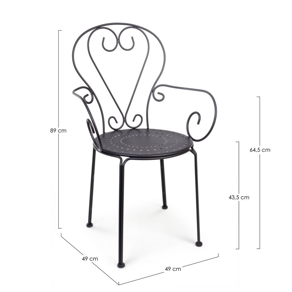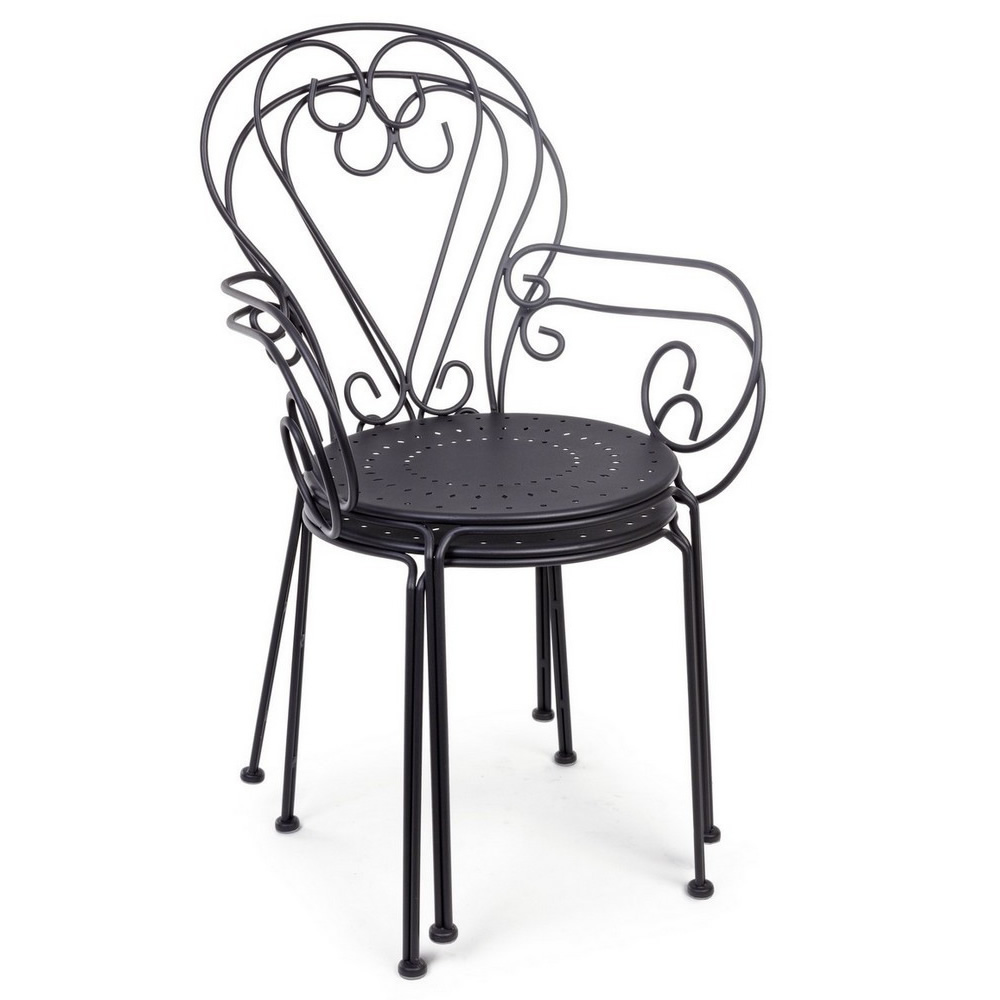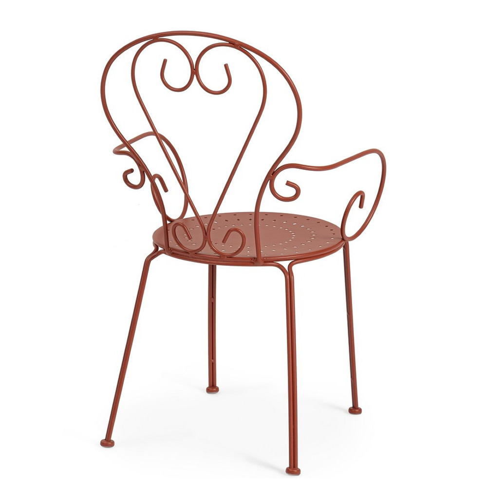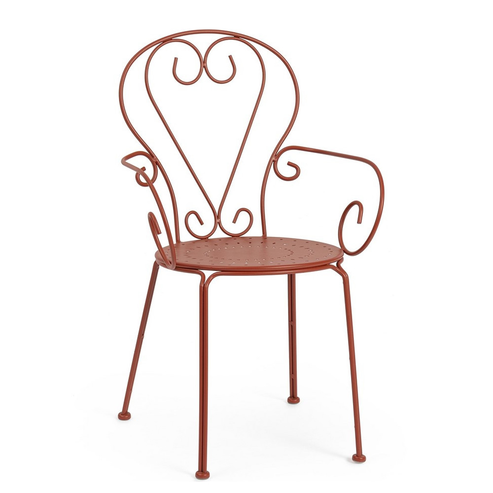 La sedia ETIENNE con braccioli coniuga eleganza retrò e funzionalità moderna, diventando la scelta ideale per arredare giardini, terrazze o spazi contract come bistrot e locali all’aperto. Realizzata in acciaio trattato per esterno con tecnologia e-coating e verniciata a polvere (poliestere), garantisce una resistenza ottimale agli agenti atmosferici. La finitura opaca ne valorizza lo stile senza tempo, donando un tocco di raffinatezza a qualsiasi ambiente.