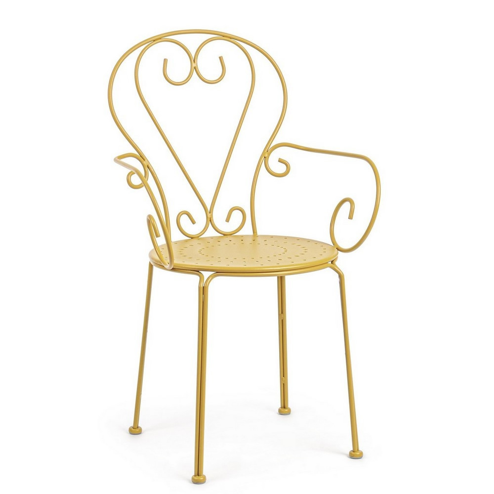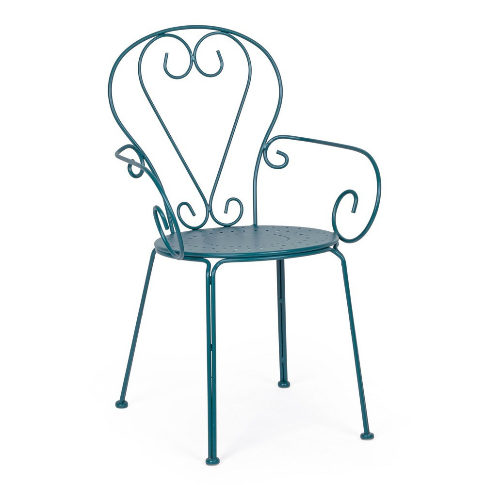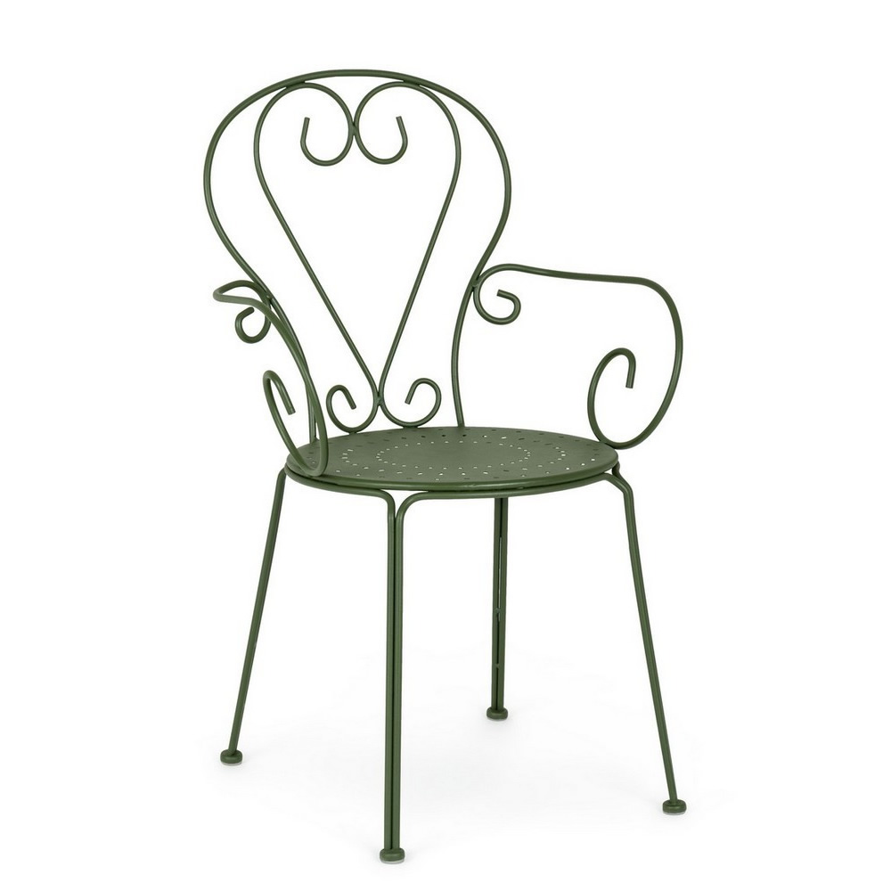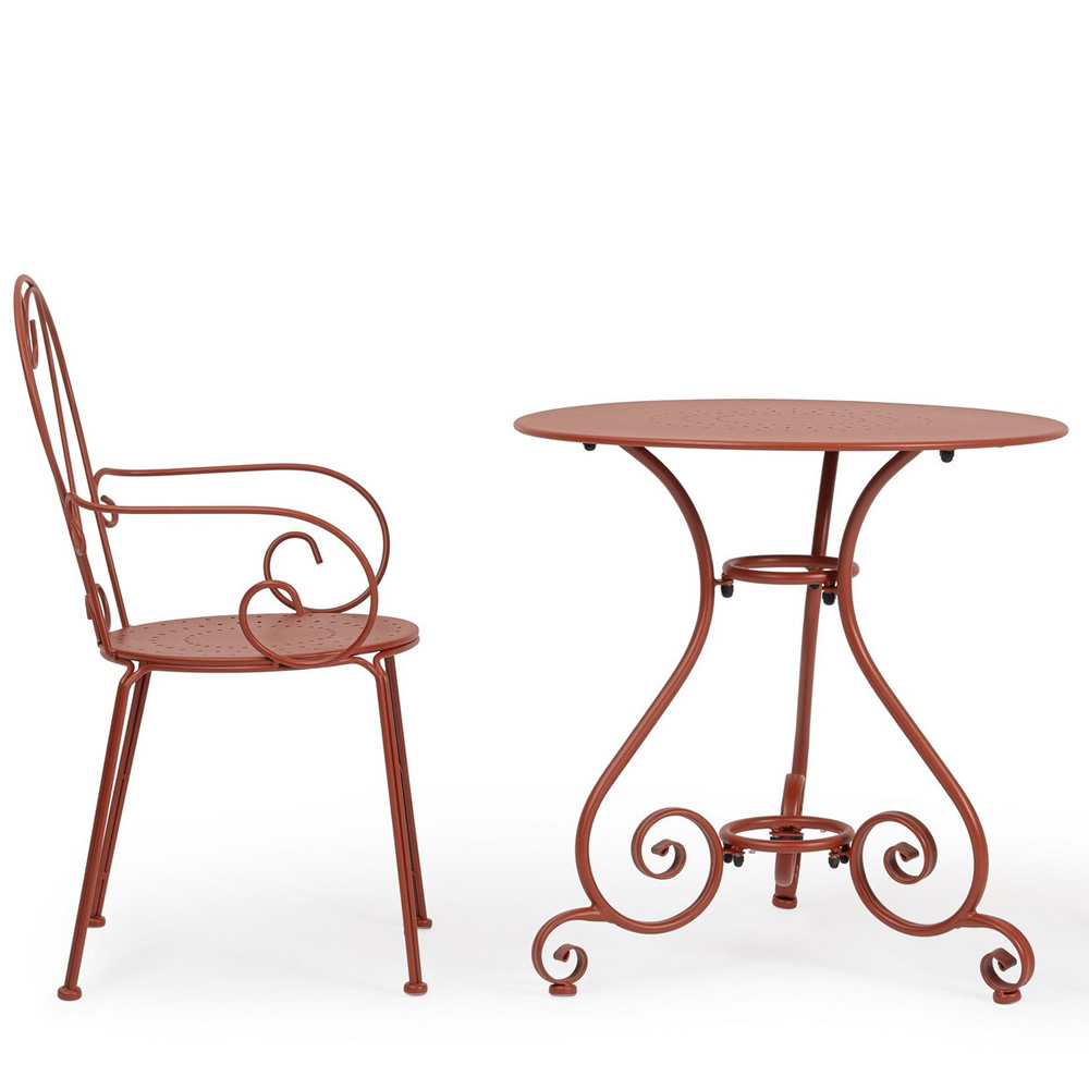 La sedia ETIENNE con braccioli coniuga eleganza retrò e funzionalità moderna, diventando la scelta ideale per arredare giardini, terrazze o spazi contract come bistrot e locali all’aperto. Realizzata in acciaio trattato per esterno con tecnologia e-coating e verniciata a polvere (poliestere), garantisce una resistenza ottimale agli agenti atmosferici. La finitura opaca ne valorizza lo stile senza tempo, donando un tocco di raffinatezza a qualsiasi ambiente.